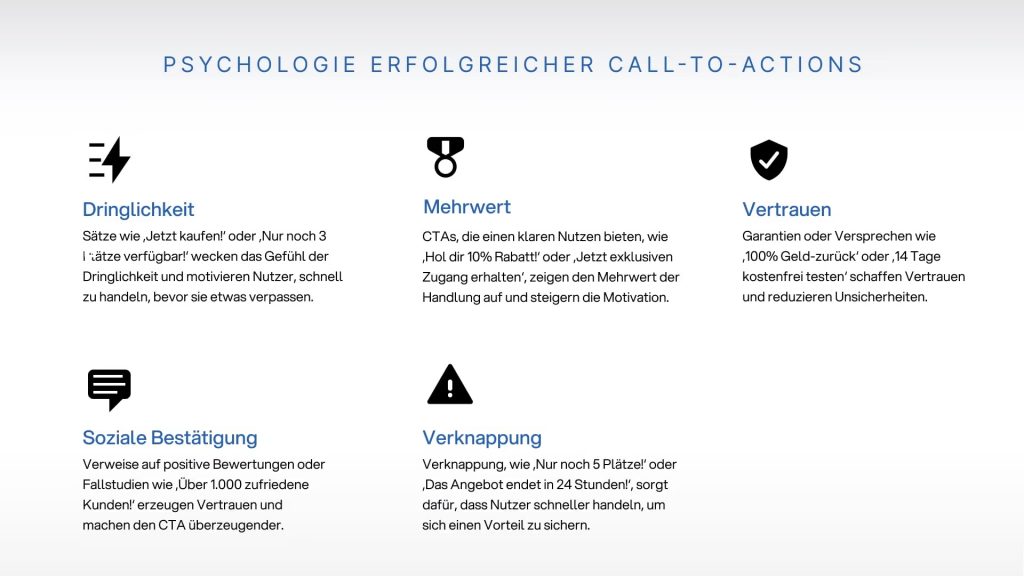 Indem du diese psychologischen Mechanismen in deinen CTAs berücksichtigst, kannst du die Wahrscheinlichkeit erhöhen, dass Nutzer tatsächlich handeln.