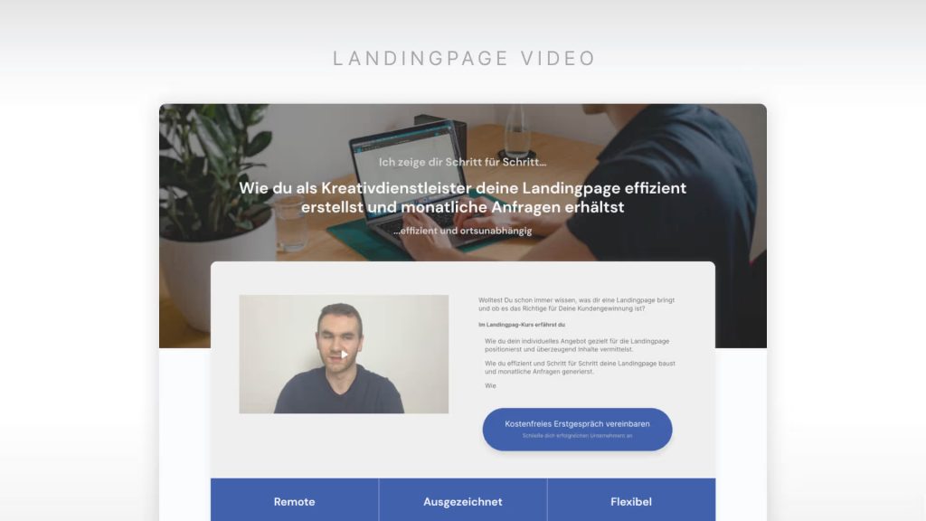 Landingpage Aufbau mit Vorstellungsvideo des Angebots um mit den Besuchern eine Beziehung aufzubauen