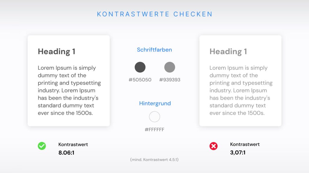 Kontrastwerte von Schriften auf Hintergrundfarbe weiß überprüfen