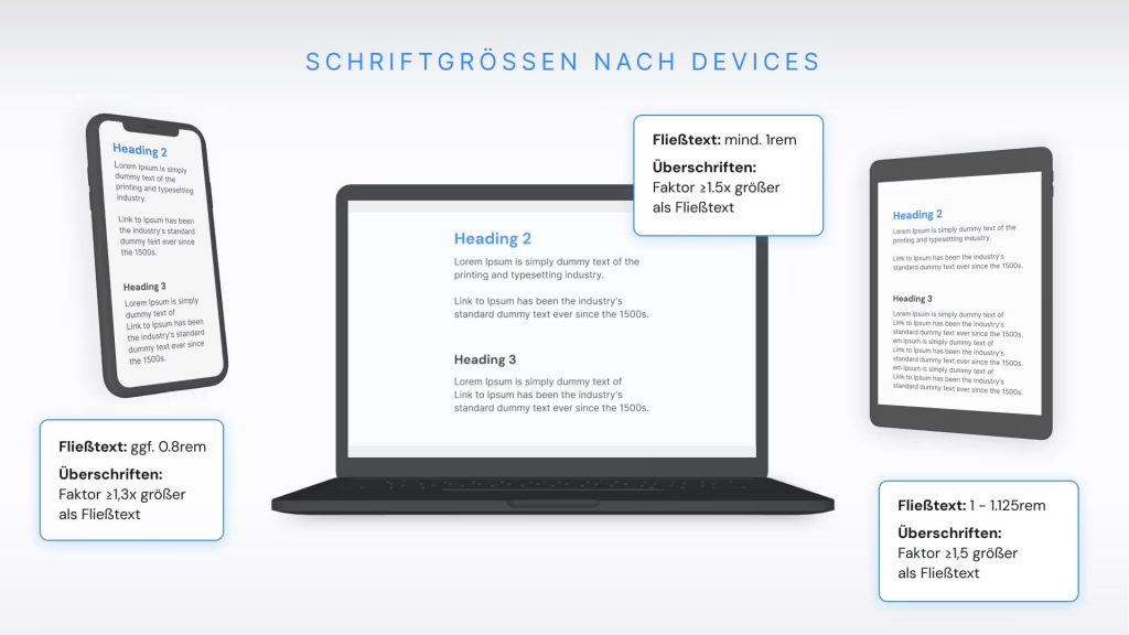 Empfohlene Schriftgrößen für Website Typografie auf Smartphone, Desktop und Tablet-Devices