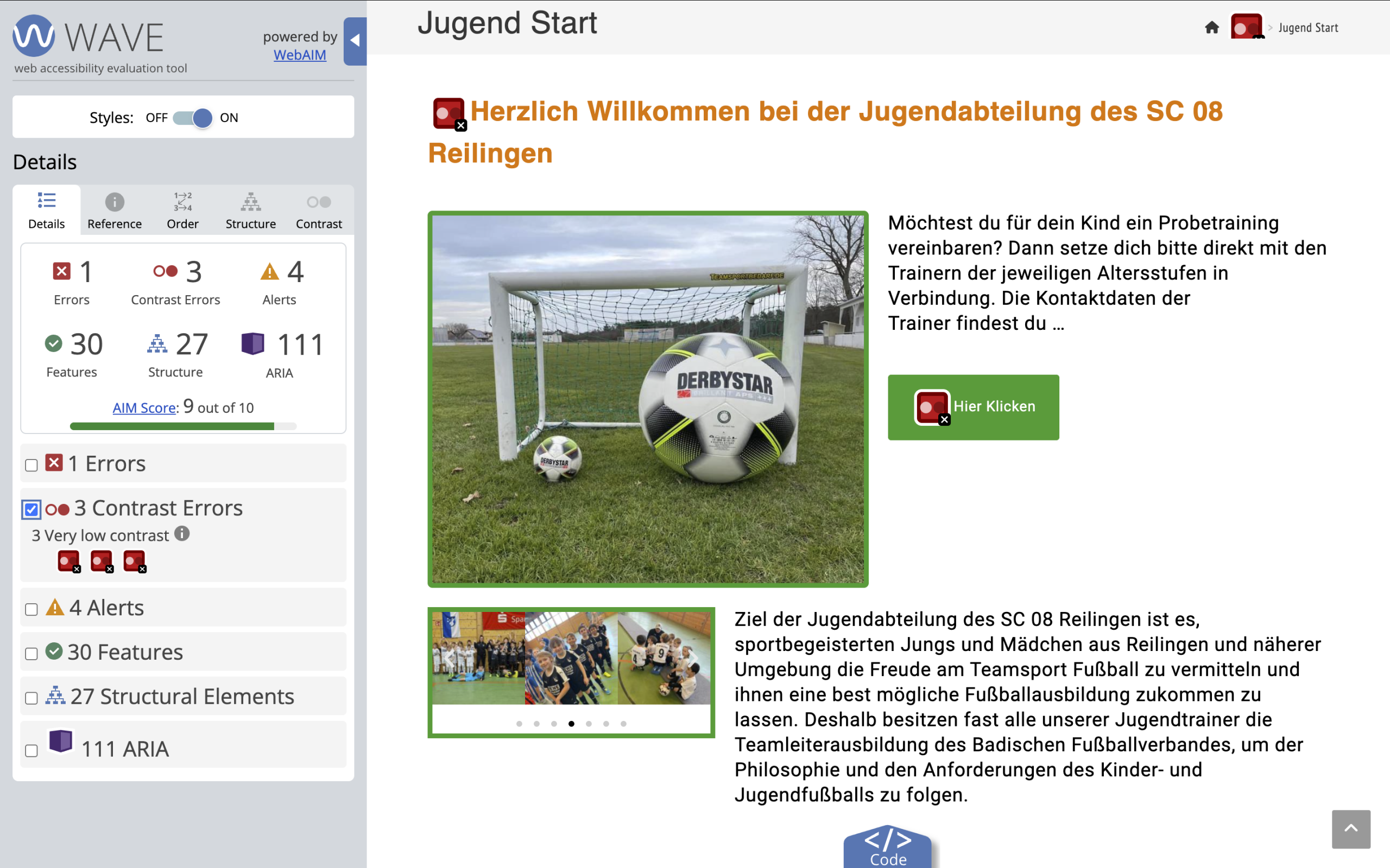 Die Website des SC 08 Reilingen präsentiert sich nun modern, übersichtlich und barrierefrei. Alle Inhalte wurden in eine neue, klare Struktur überführt. Kontraste wurden verbessert, Skip-Links ergänzt und ein Barrierefreiheits-Overlay integriert. Das Ergebnis ist eine professionelle, ansprechende Startseite mit einem einheitlichen Look – und eine Website die alle Besucher zuverlässig erreicht.